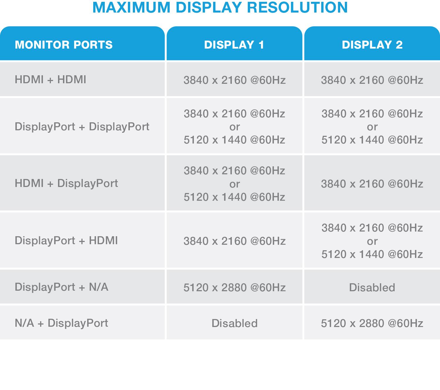 combination of HDMI+HDMI or DP+DP or HDMI+DP