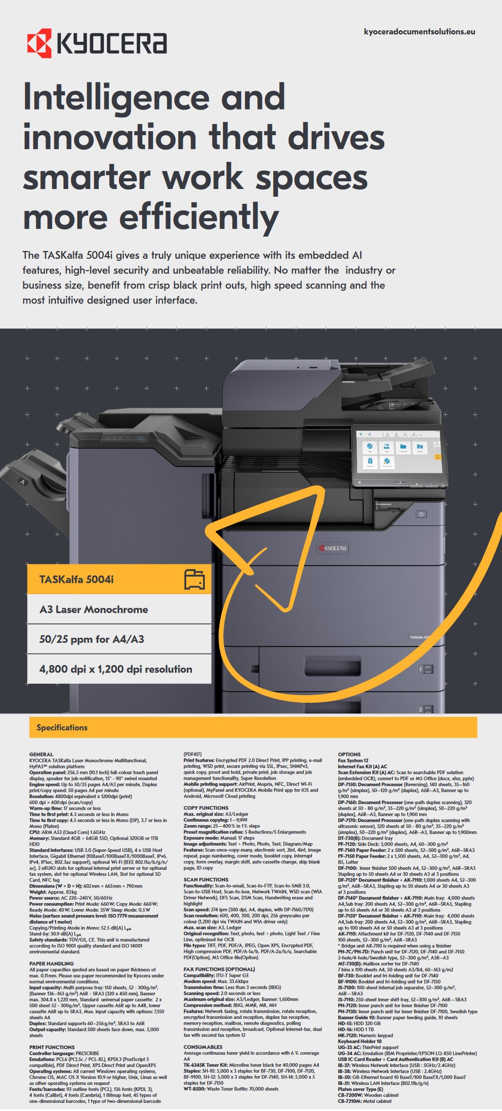 The TASKalfa 5004i gives a truly unique experience with its embedded AI features, high-level security and unbeatable reliability. Offering the best essential tools to boast productivity, while contributing to cost savings with significant reduction in power consumption.