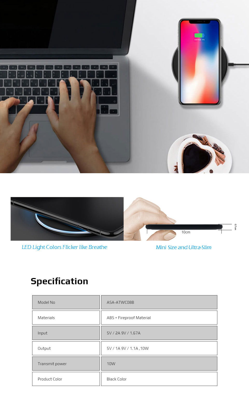 The Aerocool Slimline 10W Fast Wireless Charger supports wireless charging across both Apple and Android phones. It features a miniature size, cool LED lighting and an ultra slim design allowing you to easily take it with you while travelling.