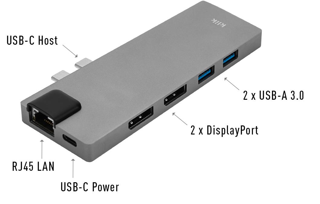 x DisplayPort, 2 x USB-A 3.0, 1 x USB-C Power, 1 x RJ45 LAN, 1 x SD